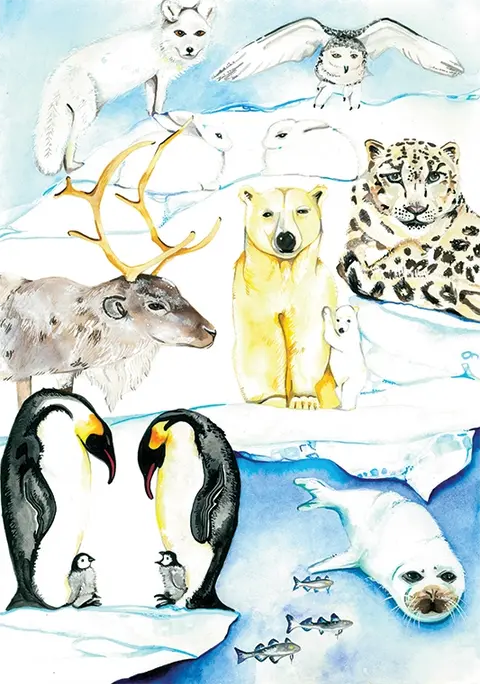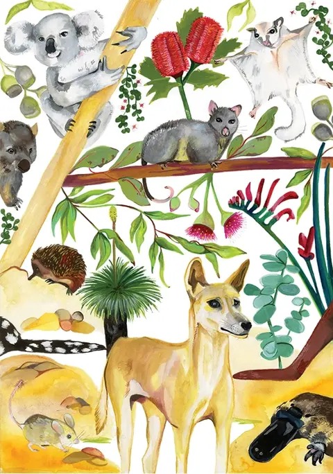 Inspired by the traditional scizzors and glue of paper collage, Liana Berry Art Painted Collages piece together topical forms to create an abundant, detailed image, full of life and very often wilderness. Her first series, Around the World In Animals evidences a clear love for the natural world and a striking ability to execute detailed, large bodies of hand painted work.